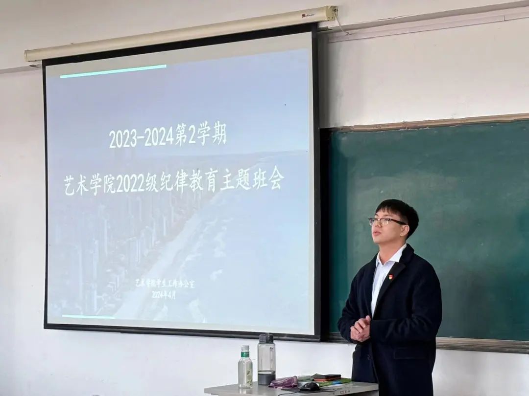 为培养学生良好的学习作风与生活习惯,保障万博体育官网各项工作顺利平稳进行,艺术万博体育官网学工办于3月13日12:00在老校区三教3421教室召开 “2022级学生2023-2024学年度第二学期年级会”,会议由辅导员毕云龙老师主持,2022级全体学生参加会议。