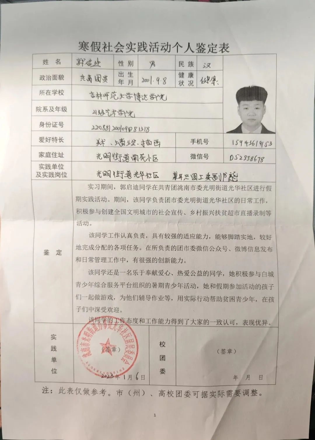 根据我报名的意愿,我被分配到了白泉镇镇南社区,分团委副书记一职。刚开始我的工作比较基础,就是给每个居民记录反映的问题并上报,平时也会打扫卫生,帮助工作人员整理资料。在这一个多月的时间里,首先到社区参与了活动,深刻体会到了老党员老干部们当时工作的不易。此外,在党建办、综合服务中心学习到了很多业务,学到了一些处理问题的技巧、与人沟通的能力,也感受到了轻松的工作氛围,体验学校以外的环境。同时,也能帮忙处理一些工作、用掌握的知识技能提升工作效率。