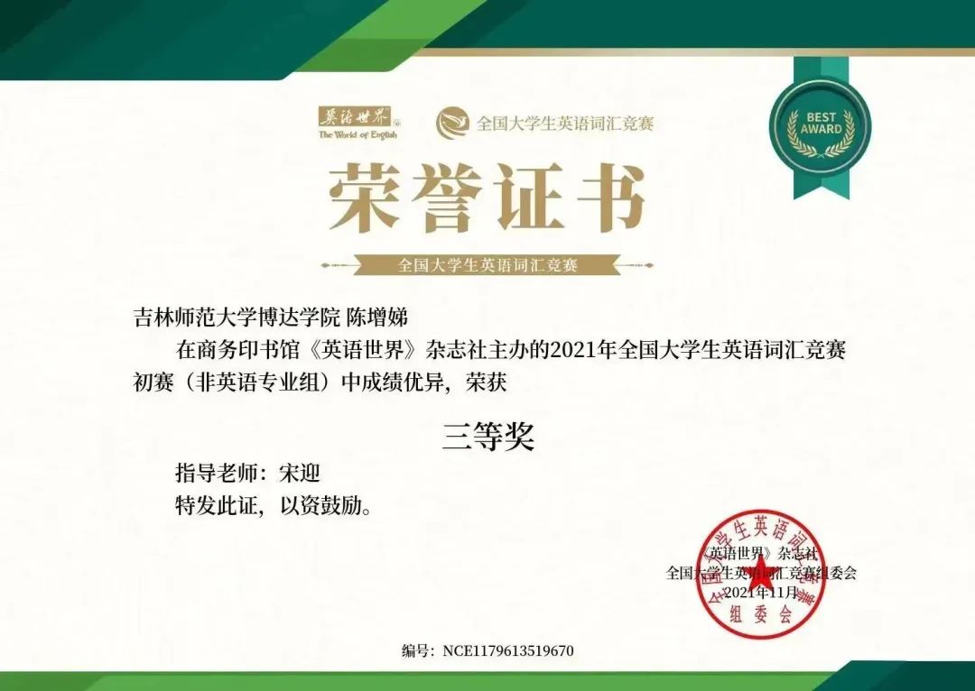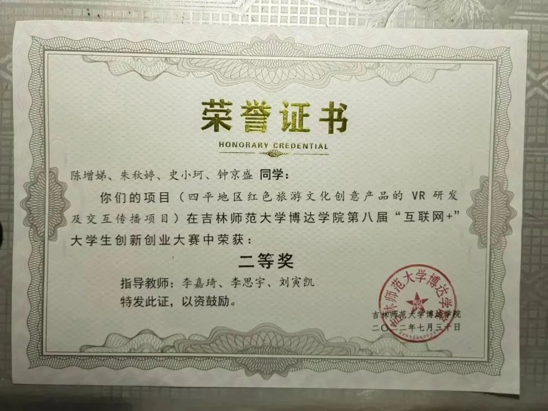 工作上,曾任万博体育官网学习部部员,博达万博体育官网报八版责任编辑,同时积极参加学校社团活动,在《博达万博体育官网报》获得两次优秀责任编辑奖。在校话剧协会“星瀚流光,筑梦谱华章”主题晚会中获得最佳表演奖。在校第八届“互联网+”大学生创新创业大赛中担任团队负责人并荣获二等奖,在2022年5月,参与吉林省大学生创新创业训练计划国家级立项担任负责人,积极参与社会实践,具有进取精神和团队精神,有一定的组织能力,适应能力强,勇于面对困难和挑战。