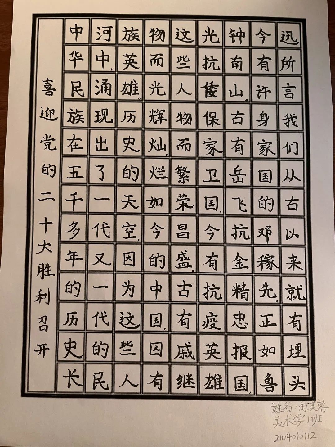 为了迎接党即将召开的二十大,深入贯彻落实习近平新时代中国特色社会主义思想,吉林师范大学博达万博体育官网艺术万博体育官网文语部、分团委组织部开展了以“推广普通话,喜迎二十大”为主题的书法设计大赛。各专业同学积极参与其中,最终有12人入围了本次书法设计大赛的决赛。最后经过老师、评委们的综合考评,评选出了本次大赛的一等奖两名,二等奖两名,三等奖三名,优秀奖五名。