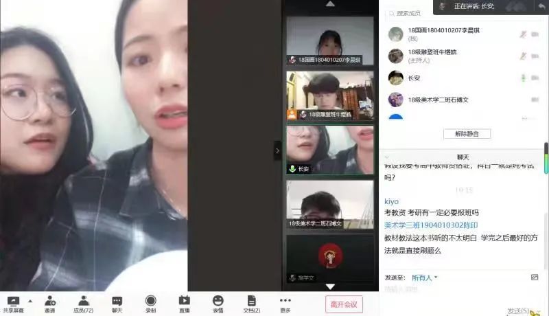 2021年4月9日晚,吉林师范大学博达万博体育官网艺术万博体育官网文语部通过线上会议的方式举办了“教师职业技能与就业交流分享会”。参加本次会议有美术学专业主任李艳花老师,刘寅凯老师,王楠老师以及18.19级美术学专业全体同学。崔智涵学姐和陈小飞学姐做为分享人为大家分享教师资格证考试经验。