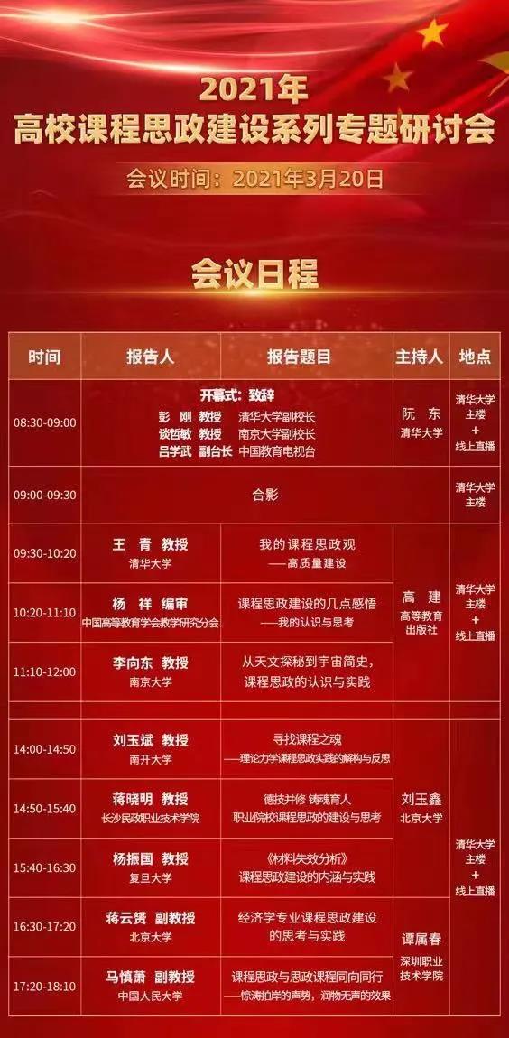 本次专题研讨会中,来自清华大学、南开大学、中国人民大学等高校的专家作了细致的报告。专家们交流并深刻研讨在课程思政建设研究和建设实践中的认识与思考,着力推进与提高广大高校教师的课程思政认识水平和建设能力,推动了广大高校课程思政研究和建设。
