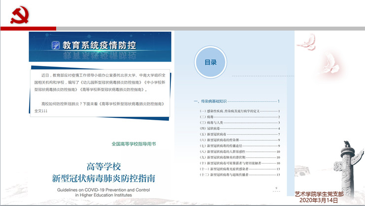 3.教育活动的第三部分是汤老师根据教育部发布的《高等学校新型冠状病毒肺炎防控指南》组织学生党员集体语音宣讲学习教育。