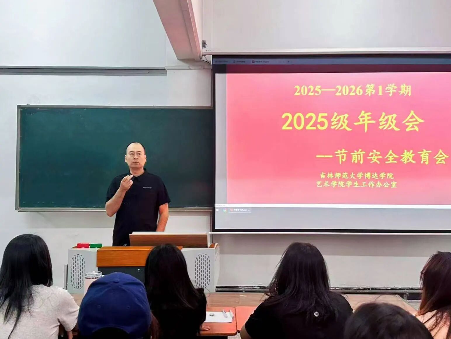 为切实营造安全、和谐、稳定的校园环境,保障全体学生在国庆假期的人身财产安全,同时引导学生合理规划假期生活、保持学习节奏,2025年9月 28日,艺术万博体育官网于1501教室召开国庆节前安全教育大会。本次会议由辅导员王占利老师与李睿琦老师共同主持,2023级、2025级全体学生全员参会。