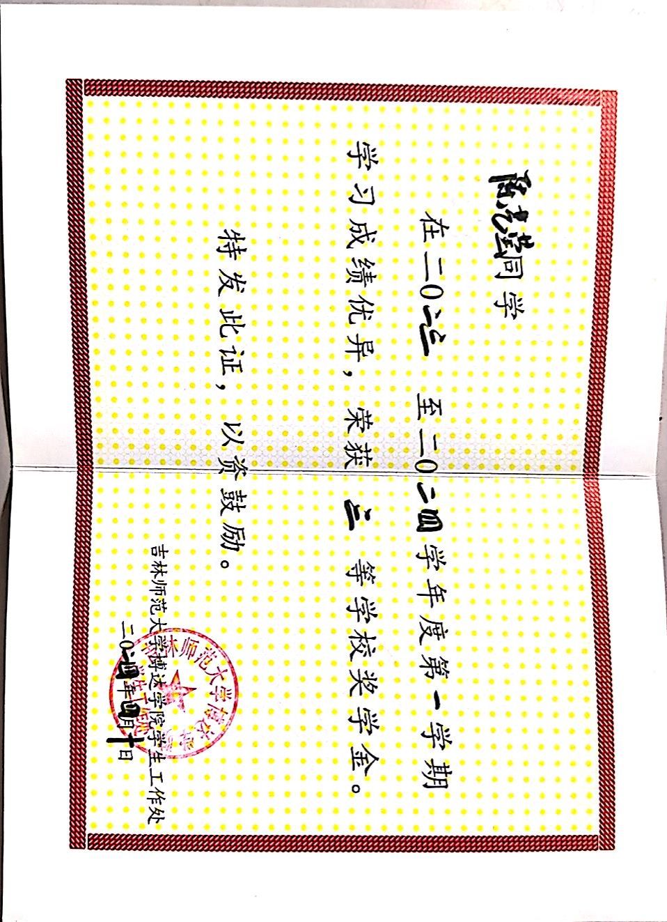 在2023-2024学年度获得国家励志奖学金
