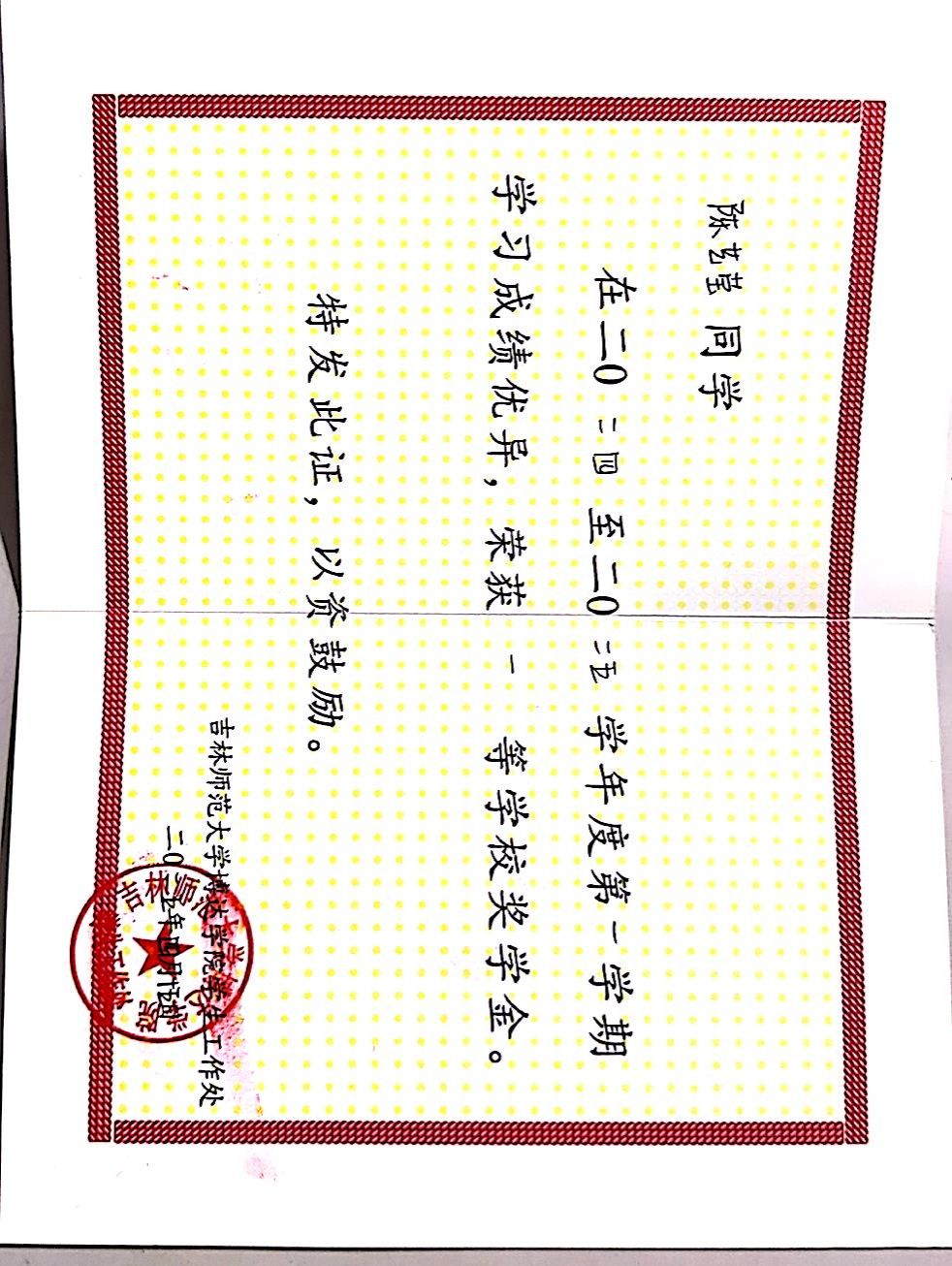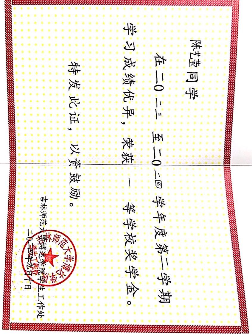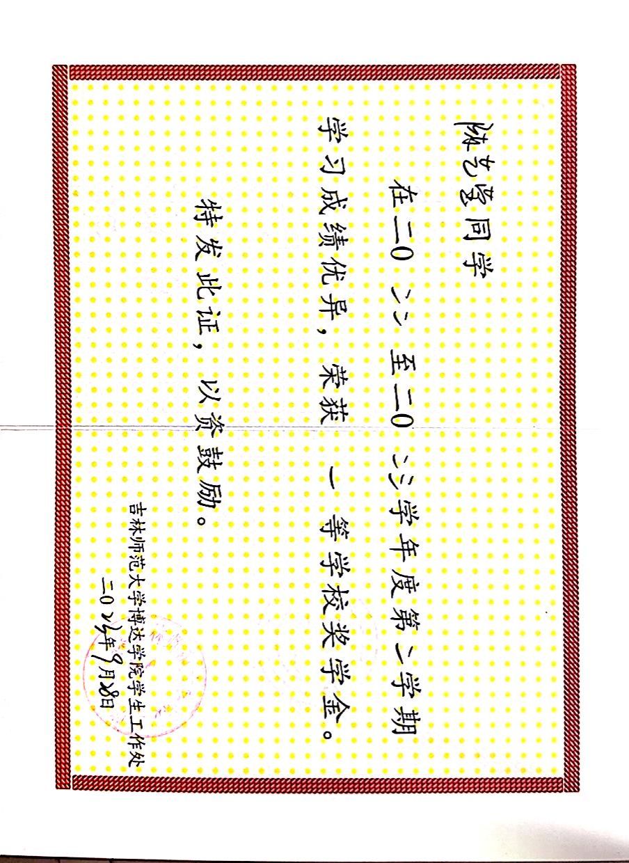 在2023-2024学年度第二学期获得一等奖学金