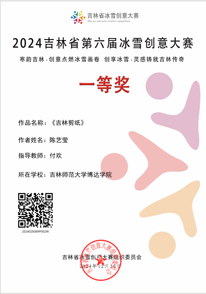 在2024学年度获得吉林省第六届冰雪创意大赛一等奖