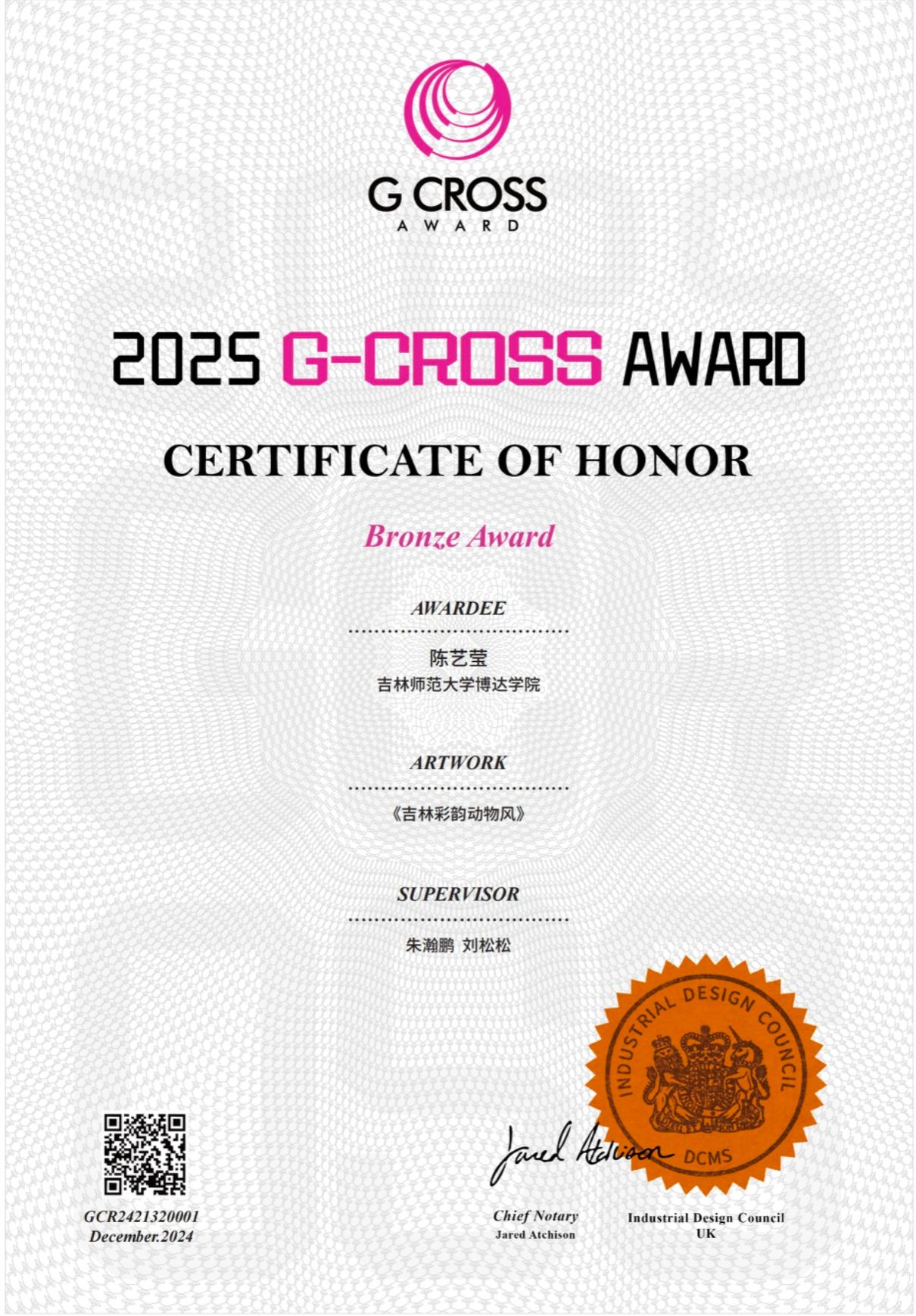 获得G-CROSS跨界艺术创意奖铜奖