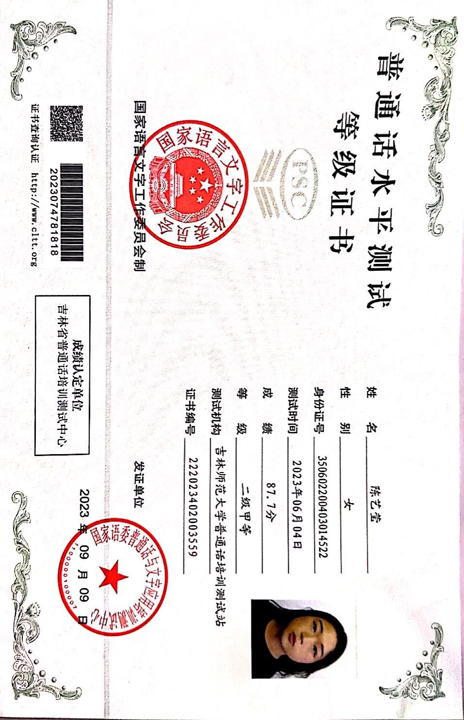 陈艺莹 女 共青团员