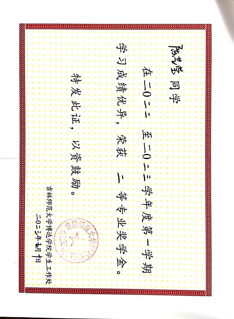 在2022-2023学年度第二学期获得一等奖学金