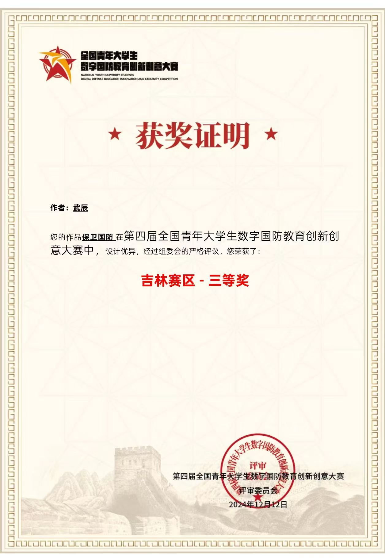 第四届全国青年大学生数字国防教育创新创意大赛:吉林赛区三等奖