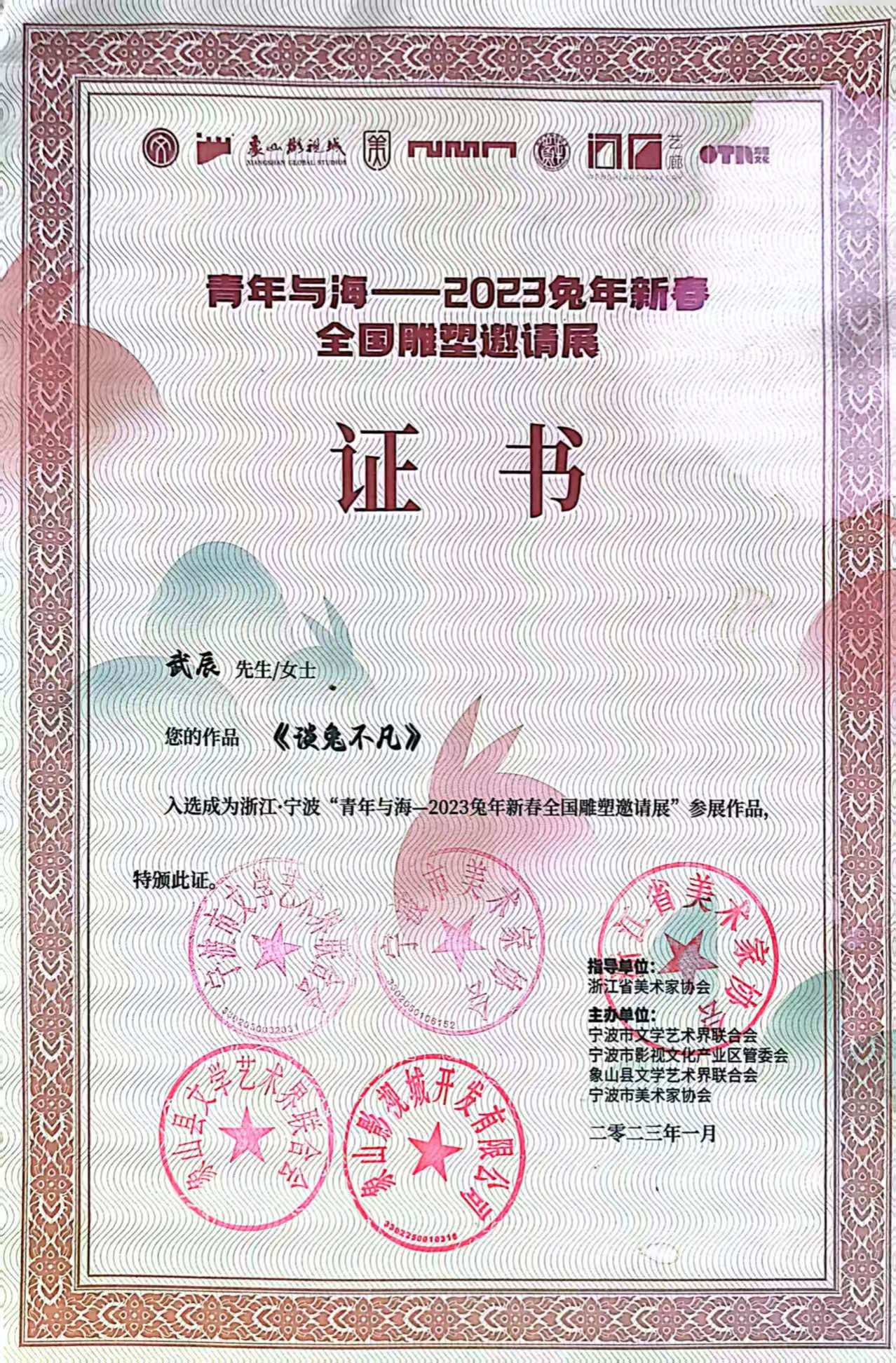 青年与海—2023兔年新春全国雕塑邀请展中,作品被入选为参展作品
